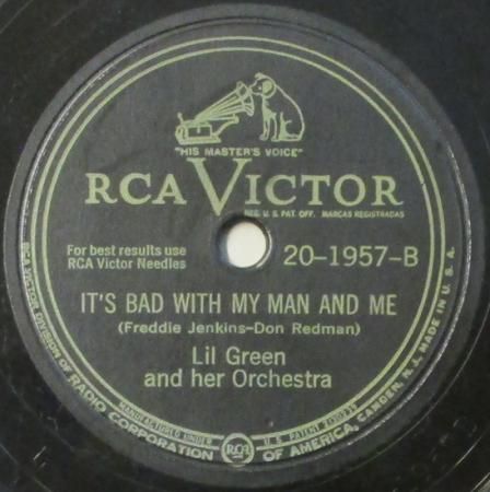 アーティスト:リル・グリーン Lil Green タイトル:BLOWTOP BLUES / IT'S BAD WITH MY MAN AND ME 国籍:米 レーベル:RCA VICTOR レコード番号:20-1957 盤質:B (サーフェイスノイズ少) 備考:10インチ / ブルース / 音Good♪