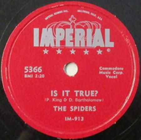 アーティスト:ザ・スパイダーズ The Spiders タイトル:WITCHCRAFT / IS IT TRUE? 国籍:米 レーベル:IMPERIAL レコード番号:5366 盤質:B (サーフェイスノイズ少) 備考:10インチ / Doo Wop / 音Good♪