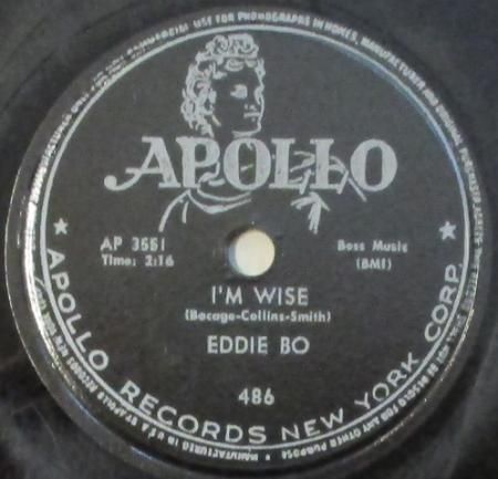 アーティスト:エディ・ボー Eddie Bo   タイトル:I'M WISE / HAPPY TEARS   国籍:米   レーベル:APOLLO   レコード番号:486   盤質:BC (浅スリ / サーフェイスノイズ少)   備考:10インチ / ブルース / 音Good♪