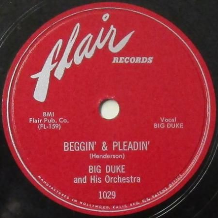 アーティスト:ビッグ・デューク & ヒズ Orc. Big Duke and His Orchestra   タイトル:BEGGIN' & PLEADIN' / BABY BEAT IT   国籍:米   レーベル:FLAIR   レコード番号:1029   盤質:B (サーフェイスノイズ少)   備考:10インチ / R&B / 音Good♪