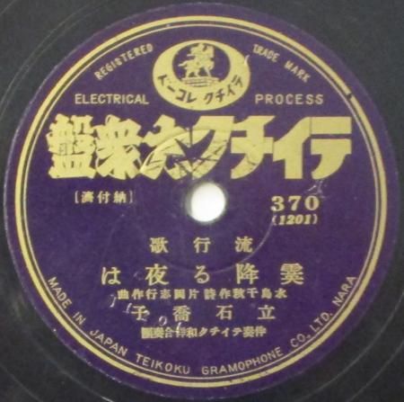 アーティスト:藤村 一郎 / 立石 喬子   タイトル:スキーの唄 / 霙降る夜は   国籍:日   レーベル:テイチク大衆盤   レコード番号:370   盤質:B (サーフェイスノイズ少)   備考:10インチ / 音Good♪