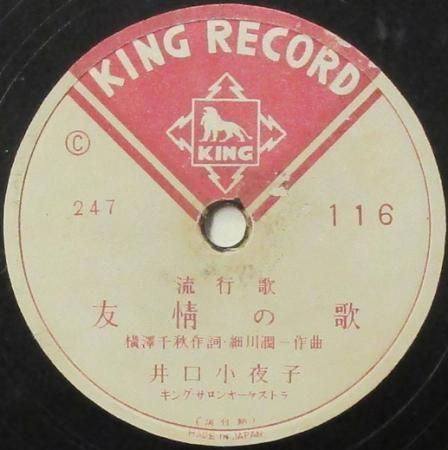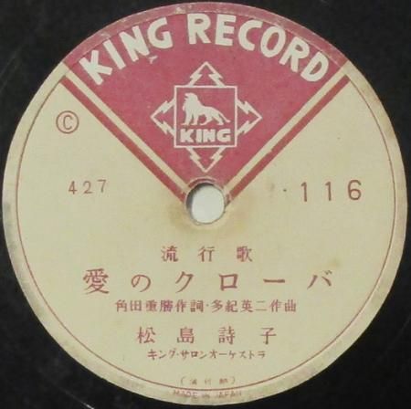 アーティスト:松島詩子 / 井口小夜子 タイトル:愛のクローバ / 友情の歌 国籍:日 レーベル:KING レコード番号:116 盤質:BC (浅スリ / サーフェイスノイズ多少++) 備考:10インチ / 音Good♪