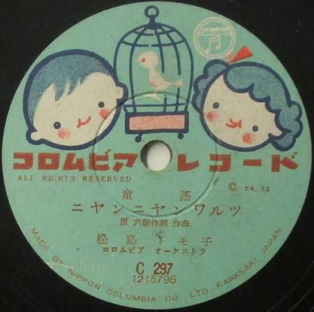 アーティスト:松島 トモ子 タイトル:陽気な水兵さん / ニャンニャンワルツ 国籍:日 レーベル:COLUMBIA レコード番号:C 297 盤質:B (フェイスノイズ多少++) 備考:10インチ / 童謡 / 音Good♪