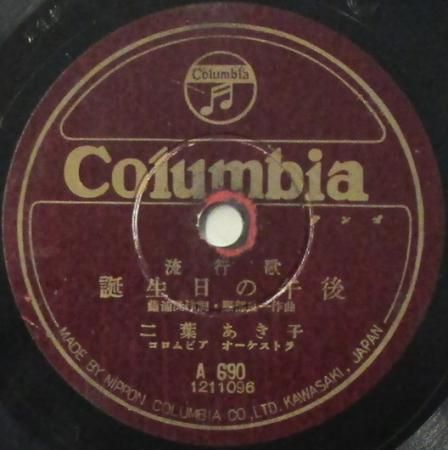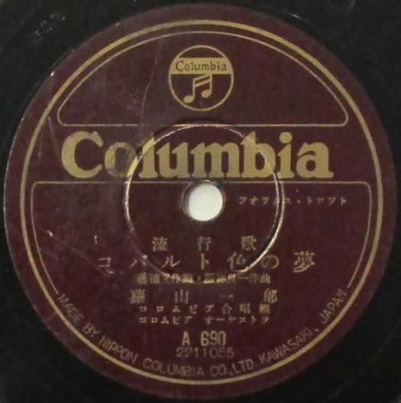 アーティスト:藤山 一郎 / 二葉 あき子 タイトル:コバルト色の夢 / 誕生日の午後 国籍:日 レーベル:COLUMBIA (N盤) レコード番号:A 690 盤質:BC (浅スリ / サーフェイスノイズ多少++) 備考:10インチ / 音Good♪