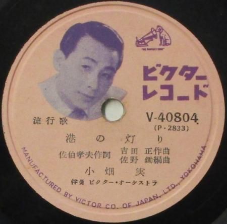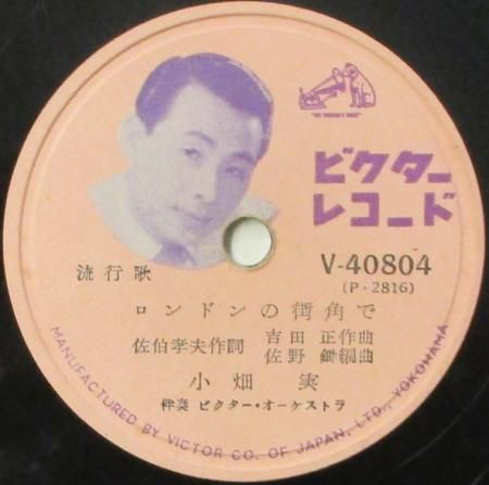 アーティスト:小畑 実 タイトル:ロンドンの街角で / 港の灯り 国籍:日 レーベル:VICTOR レコード番号:V 40804 盤質:B (サーフェイスノイズ多少++) 備考:10インチ / 音Good♪
