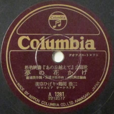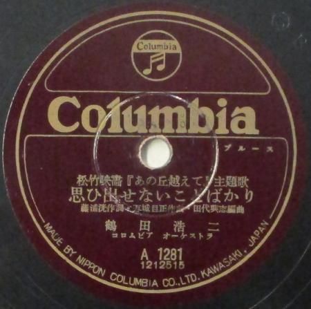 アーティスト:鶴田浩二 / 美空ひばり・鶴田浩二 タイトル:思ひ出せないことばかり / 夢の花かげ 国籍:日 レーベル:COLUMBIA レコード番号:A 1281 盤質:B (サーフェイスノイズ多少++) 備考:10インチ / 松竹映画 「あの丘越えて」主題歌 / 音Good♪