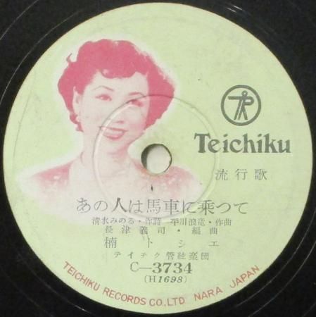 アーティスト:楠トシエ / 真木不二夫 タイトル:あの人は馬車に乗って / 東京へ行こうよ 国籍:日 レーベル:TEICHIKU レコード番号:C-3734 盤質:B (サーフェイスノイズ多少++) 備考:10インチ / 音Good♪