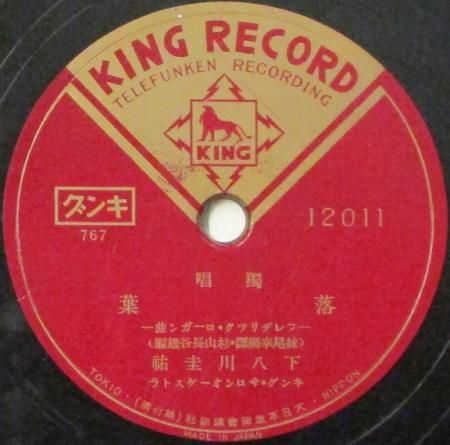 アーティスト:下八川圭祐 (Bar) 〜 キング・サロンオーケストラ タイトル:落葉 / シューマン 二人の擲弾兵 国籍:日 レーベル:KING レコード番号:12011 盤質:BC (浅スリ / サーフェイスノイズ少) 備考:10インチ / 音Good♪