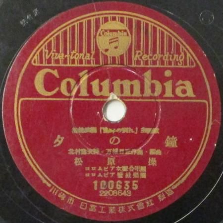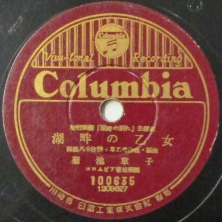 アーティスト:菊池 章子 / 松原 操   タイトル:湖畔の乙女 / 夕の鐘   国籍:日   レーベル:COLUMBIA (N盤)   レコード番号:100635   盤質:BC (サーフェイスノイズ多少++)   備考:10インチ / 音Good♪