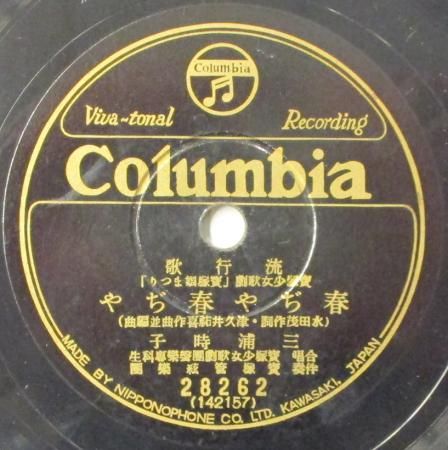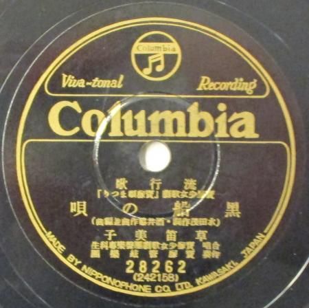 アーティスト:草笛美子 / 三浦時子 タイトル:黒船の唄 / 春ぢゃ春ぢゃ 国籍:日 レーベル:COLUMBIA レコード番号:28262 盤質:B (サーフェイスノイズ多少++) 備考:10インチ / 音Good♪