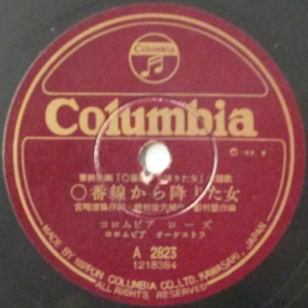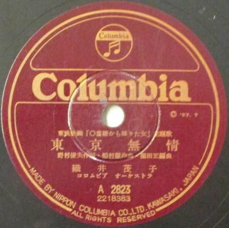 アーティスト:織井茂子 / コロムビア・ローズ タイトル:東京無情 / 0番線から降りた女 国籍:日 レーベル:COLUMBIA レコード番号:A 2825 盤質:B (サーフェイスノイズ多少++) 備考:10インチ / 音Good♪
