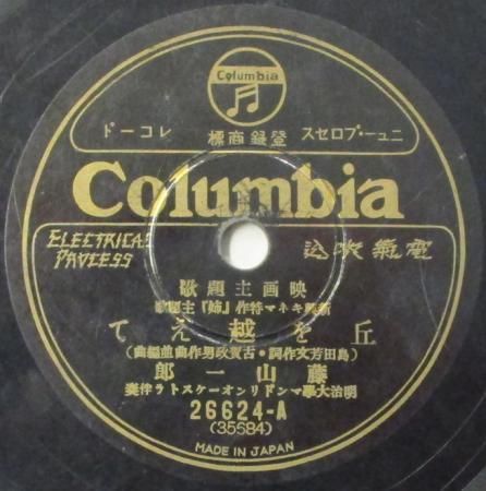 アーティスト:藤山 一郎 / 関 種子 タイトル:丘を越えて / 窓に凭れて 国籍:日 レーベル:COLUMBIA (本盤) レコード番号:26624 盤質:BC (浅スリ / サーフェイスノイズ多少++) 備考:10インチ / 音Good♪