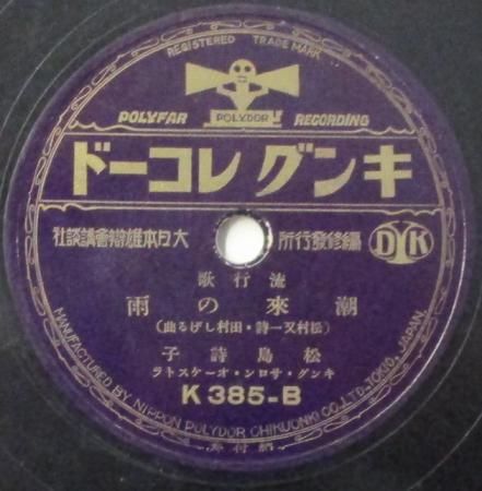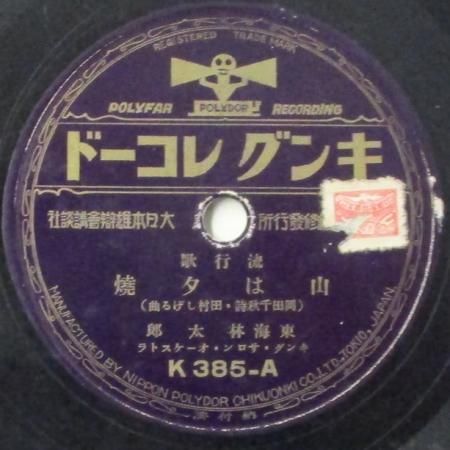アーティスト:東海林太郎 / 松島詩子 タイトル:山は夕焼 / 潮来の雨 国籍:日 レーベル:KING レコード番号:K 385 盤質:B (サーフェイスノイズ多少++) 備考:10インチ / 音Good♪
