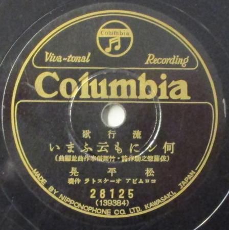 アーティスト:松平晃 / 関種子 タイトル:何ンにも云ふまい / 流れの乙女 国籍:日 レーベル:COLUMBIA (本盤) レコード番号:28125 盤質:B (サーフェイスノイズ多少++) 備考:10インチ / 音Good♪