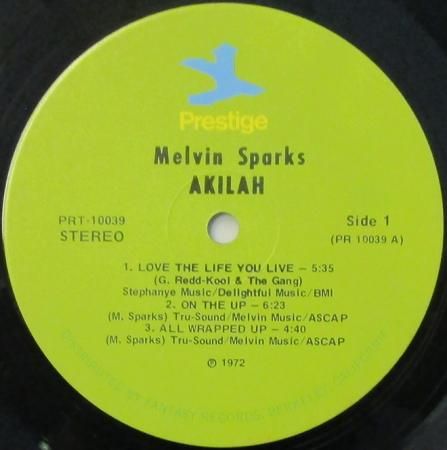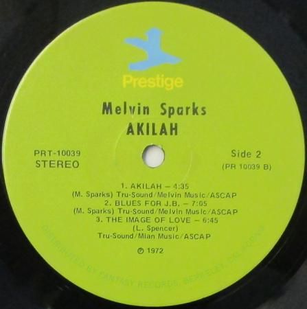 アーティスト:メルヴィン・スパークス + 10 メルヴィン・スパークス (G) / レオン・スペンサー (Org, P) / イドリス・ムハマド (Dr) / バディ・コールドウェル (Percussion) 他 Melvin Sparks + 10   タイトル:AKILAH! 〜 LOVE THE LIFE YOU LIVE / ON THE UP / ALL WRAPPED UP / AKILAH / BLUES FOR J. B. / THE IMAGE OF LOVE   国籍:米   レーベル:PRESTIGE   レコード番号:10039   盤質:BC (キズ修正痕 / ノイズ極少)   備考:12インチ / ステレオ