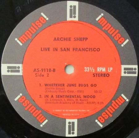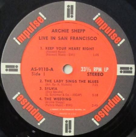 タイトル:ARCHIE SHEPP LIVE IN SAN FRANCISCO 〜 Keep Your Heart Right / The Lady Sings the Blues / Sylvia / The Wedding / Wherever June Bugs Go / In a Sentimental Mood