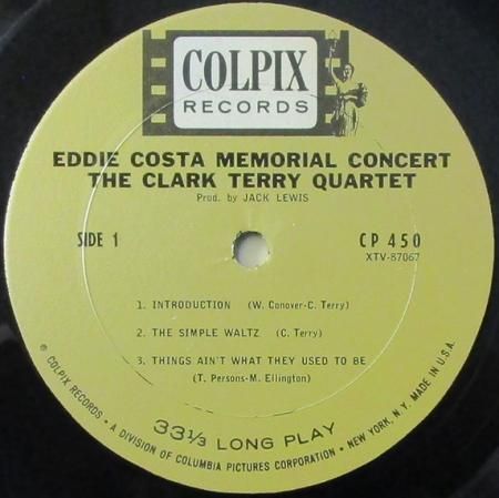 タイトル:EDDIE COSTA: MEMORIAL CONCERT 〜 THE SIMPLE WALTZ / THINGS AIN'T WHAT THEY USED TO BE (以上 クラーク・テリー・4) / I'M CONFESSIN' (THAT I LOVE YOU) / JUST YOU, JUST ME (以上 C. ホーキンス・6)