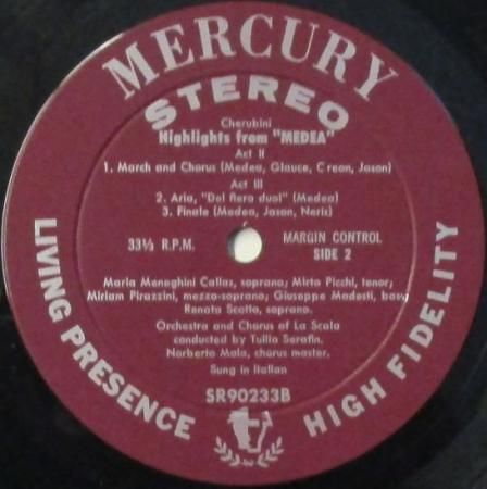 アーティスト:トゥリオ・セラフィン 〜 スカラ座 Orc.&コーラス / マリア・カラス (Sop) / ミルト・ピッチ (Ten) / レナータ・スコット (Sop) / ジュゼッペ・モデスティ (Bas) / ミリアム・ピラッツィーニ (M-Sop) 他 Tullio Serafin 〜 Orchestra and Chorus Of La Scala / Maria Meneghini Callas / Mirto Picchi / Renata Scotto / Giuseppe Modesti / Miriam Pirazzini   タイトル:ケルビーニ メディア 〜 ハイライト   国籍:米   レーベル:MERCURY (エンジ / ミゾあり)   レコード番号:SR 90233   盤質:B (ノイズ極少)   備考:12インチ / ステレオ