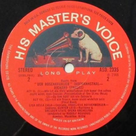 アーティスト:リーザ・デラ・カーザ (Sop) / アンネリーゼ・ローテンベルガー (Sop) / ギュンター・ライプ (Bar) / ルドルフ・ノイハウス (指揮) 〜 ドレスデン国立歌劇 Orc. & Cho. Lisa Della Casa / Anneliese Rothenberger / Gunter Leib / Rudolf Neuhaus 〜 Dresden State Opera Orchestra    タイトル:モーツァルト ドン・ジョヴァンニ   国籍:英   レーベル:EMI (HMV / カラーニッパー)   レコード番号:ASD 2335   盤質:BC (Side-2-1 にキズがあり、5回プツ音があります / 以外はノイズ極少)   備考:12インチ / ステレオ / Orig. / ジャケ裏にテープはがし跡があります