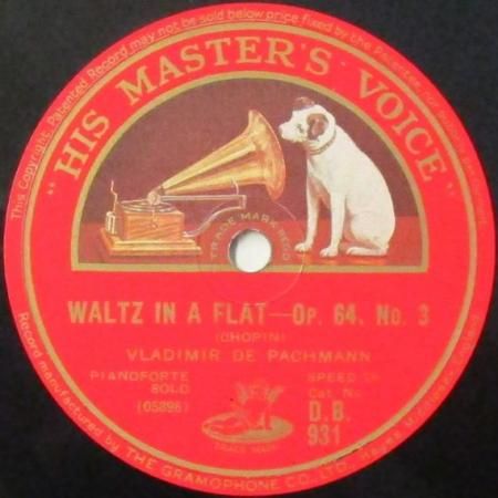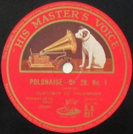 アーティスト:ウラディーミル・ド・パハマン (Pf) Vladimir De Pachmann タイトル:ショパン ポロネーズ 第1番 嬰ハ短調 / ワルツ 第8番 変イ長調 国籍:英 レーベル:HMV レコード番号:D.B. 931 盤質:B (サーフェイスノイズ多少++) 備考:12インチ / 音Good♪