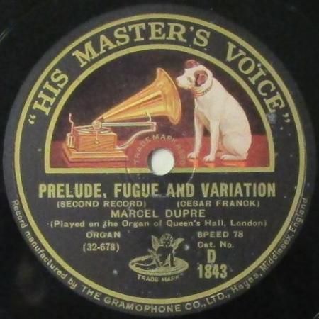 アーティスト:マルセル・デュプレ (Org) Marcel Dupre タイトル:フランク 前奏曲,フーガと変奏曲 国籍:英 レーベル:HMV (黒 / カラーニッパー) レコード番号:D 1843 盤質:B (サーフェイスノイズ多少++) 備考:12インチ / ロンドン・クィーンズ・ホールのオルガンで演奏 / 音Good♪