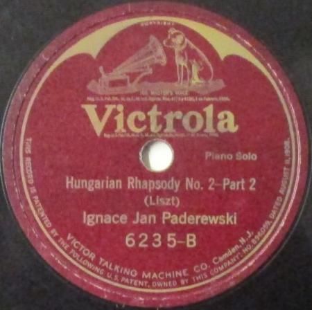 アーティスト:イグナツ・ヤン・パデレフスキ (Pf) Ignace Jan Paderewski タイトル:リスト ハンガリー狂詩曲 第2番 嬰ハ短調 Part 1 & 2 国籍:米 レーベル:VICTROLA レコード番号:6235 盤質:B (サーフェイスノイズ多少++) 備考:12インチ / 音Good♪