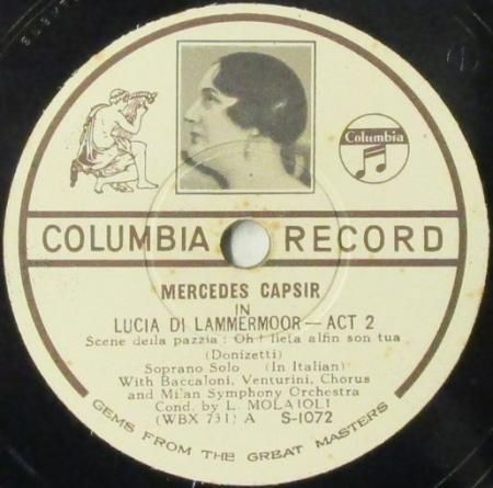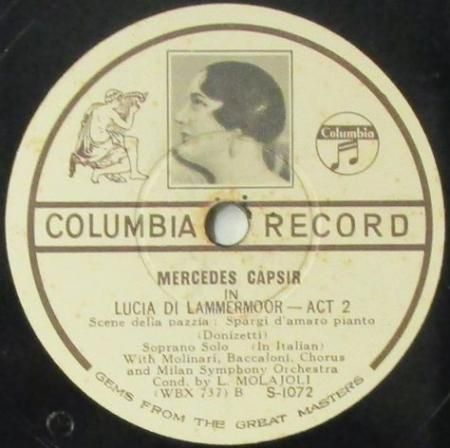 アーティスト:メルセデス・カプシール (Sop) / ロレンツォ・モラヨリ (指揮) 〜 ミラノ SO. Mercedes Capsir / Lorenzo Molajoli 〜 Mi'an Symphony Orchestra タイトル:ドニゼッティ ランメルモールのルチア 〜 狂乱の場 「とうとう私はあなたのもの」 / 「苦しい涙を流せ」 国籍:日 レーベル:COLUMBIA レコード番号:S-1072 盤質:B (サーフェイスノイズ多少++) 備考:12インチ / N盤 / 音Good♪