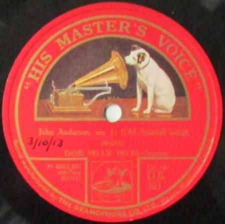 アーティスト:ネリー・メルバ (Sop) 〜 Orc. Nelie Melba with Orchestra / with Piano タイトル:ドヴォルザーク わが母の教えたまいし歌 (with Orc.) / スコットランド民謡 「ジョン・アンダーソン、マイ ジョー」 (with Piano) 国籍:英 レーベル:HMV (カラーニッパー) レコード番号:D.B. 363 盤質:B (サーフェイスノイズ多少++) 備考:12インチ / レーベルに書き込みがあります / 音Good♪