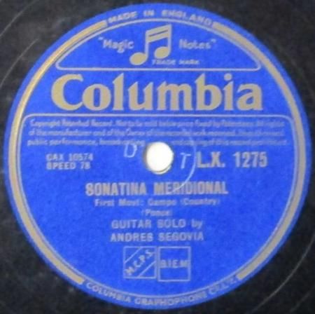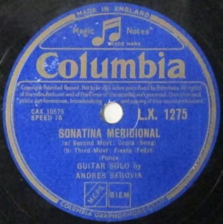 アーティスト:アンドレス・セゴヴィア (G) Andres Segovia タイトル:ポンセ 南国風のソナティナ 国籍:英 レーベル:COLUMBIA レコード番号:LX 1275 盤質:B (サーフェイスノイズ多少++) 備考:12インチ / 音Good♪